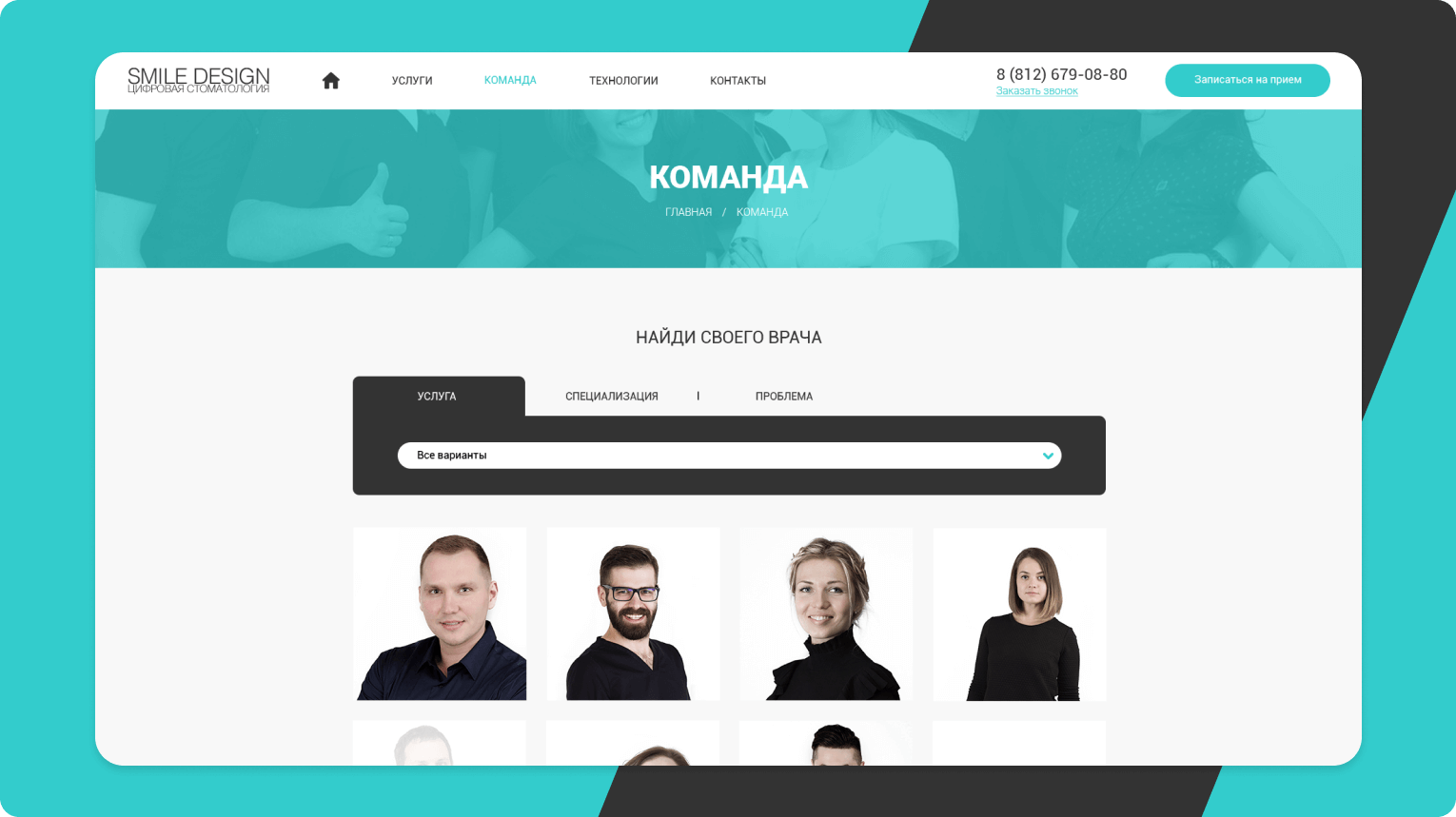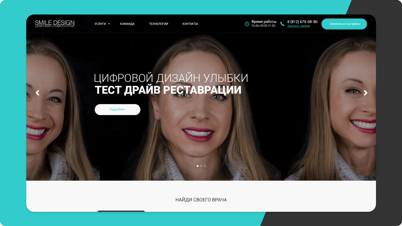 Клиент: Клиника Smile Design специализируется на цифровой, эстетической стоматологии в Санкт-Петербурге.