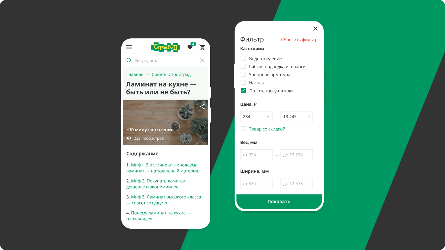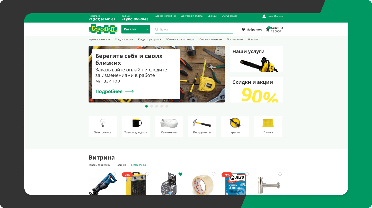 Клиент: Интернет-магазин "СтройГрад" в городе Норильск, предоставляет широкий ассортимент товаров для строительства, ремонта и обустройства дома.